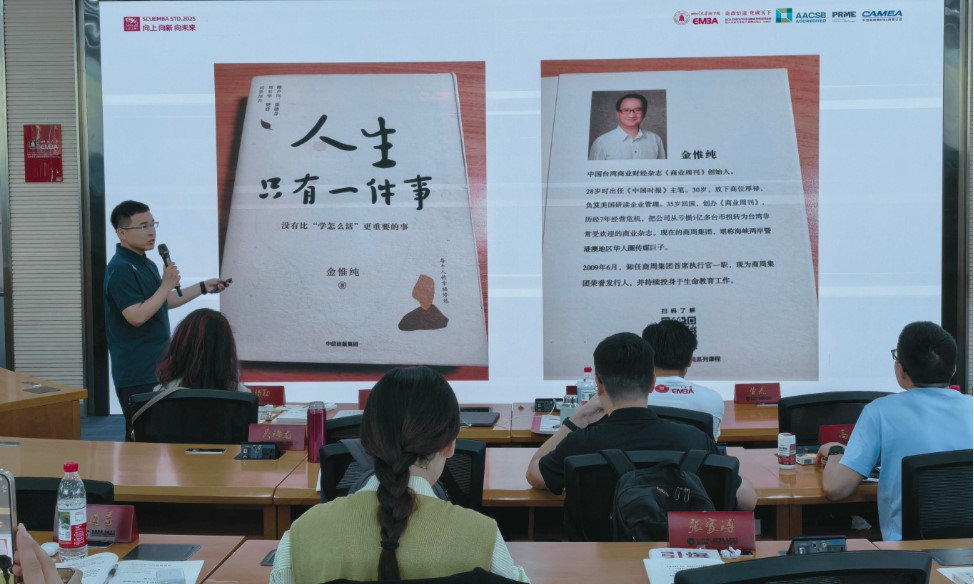 近日,在四川大学商学院EMBA“博闻天下”读书会上,EMBA2025级学生、成都联合荣大工程材料有限责任公司总经理曲芳,以《人生只有一件事》一书带来直击内心的分享——他通读全书并悉心批注,拆解了金惟纯先生那句重若千钧的话:“人生只有一件事,就是把自己活好。”