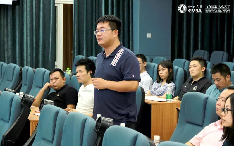 活动伊始,曹麒麟常务副主任进行了热情洋溢的致辞,对2018级EMBA同学的到来表示了热烈欢迎。接下来,他向各位新同学讲解了《四川大学商学院EMBA2018级新生入学教育》,带大家追根溯源了解了EMBA项目的起源、川大EMBA发展的现状和川大EMBA教育的培养目标、培养模式、课程体系及各项教学管理要求及安排。