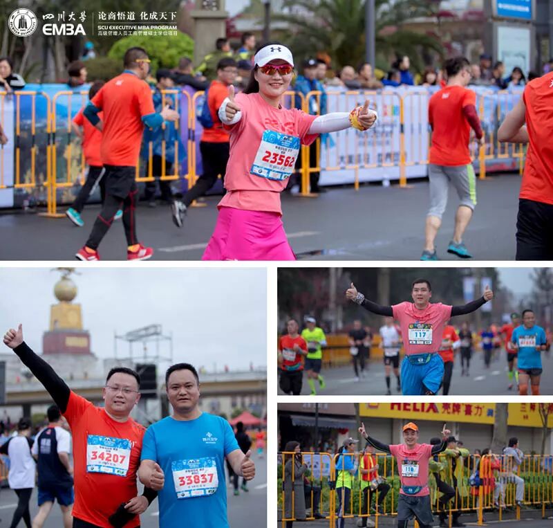 第二日的拉练,恰逢2018成都双遗马拉松赛事,川大EMBA新老戈友齐聚都江堰。虽然天空一直在飘着零星的小雨,但丝毫没有影响戈友们的心情状态。参加选拔的队员以赛代练,精神饱满,再次展开第二轮的角逐。虽然经过第一天的训练,体力消耗很大,但队员们依然拼尽全力、奋力奔跑,以优异的成绩全体完赛。四川大学商学院EMBA教育中心常务副主任,戈十领队曹麒麟博士也来到现场为“戈十三”勇士助阵,与EMBA戈友们共同完成赛事。