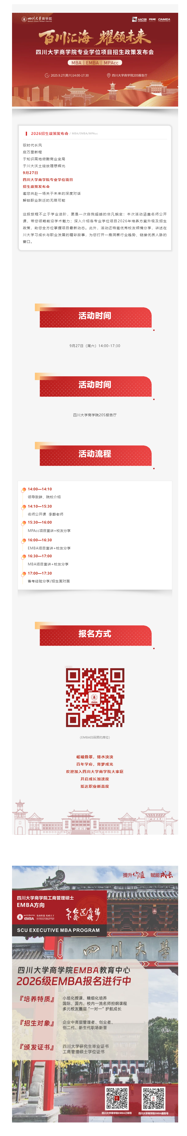 • 百川汇海 耀领未来丨四川大学商学院专业学位项目招生政策发布会(MBA/EMBA/MPAcc)等你来!
